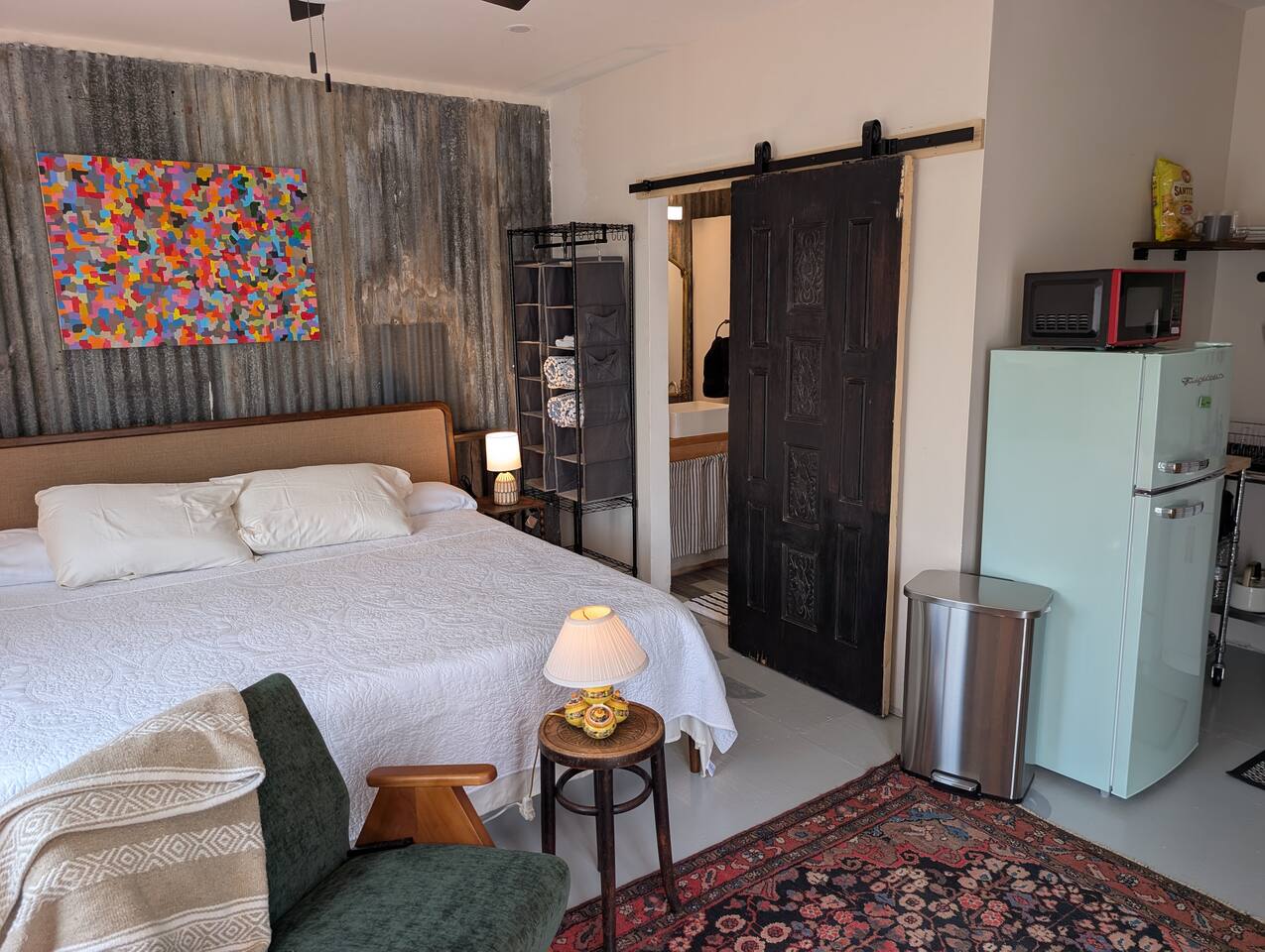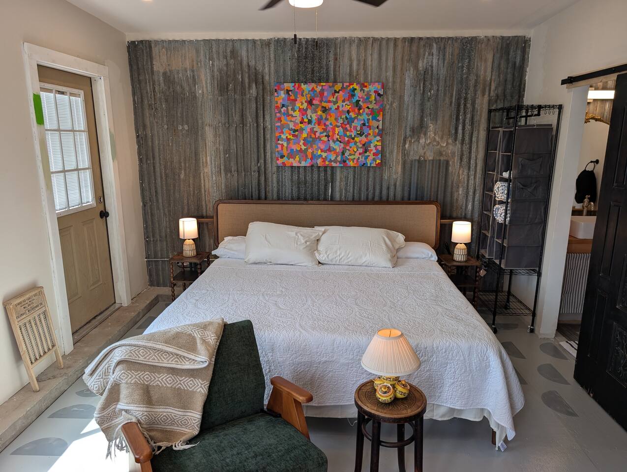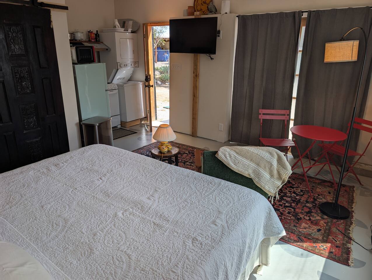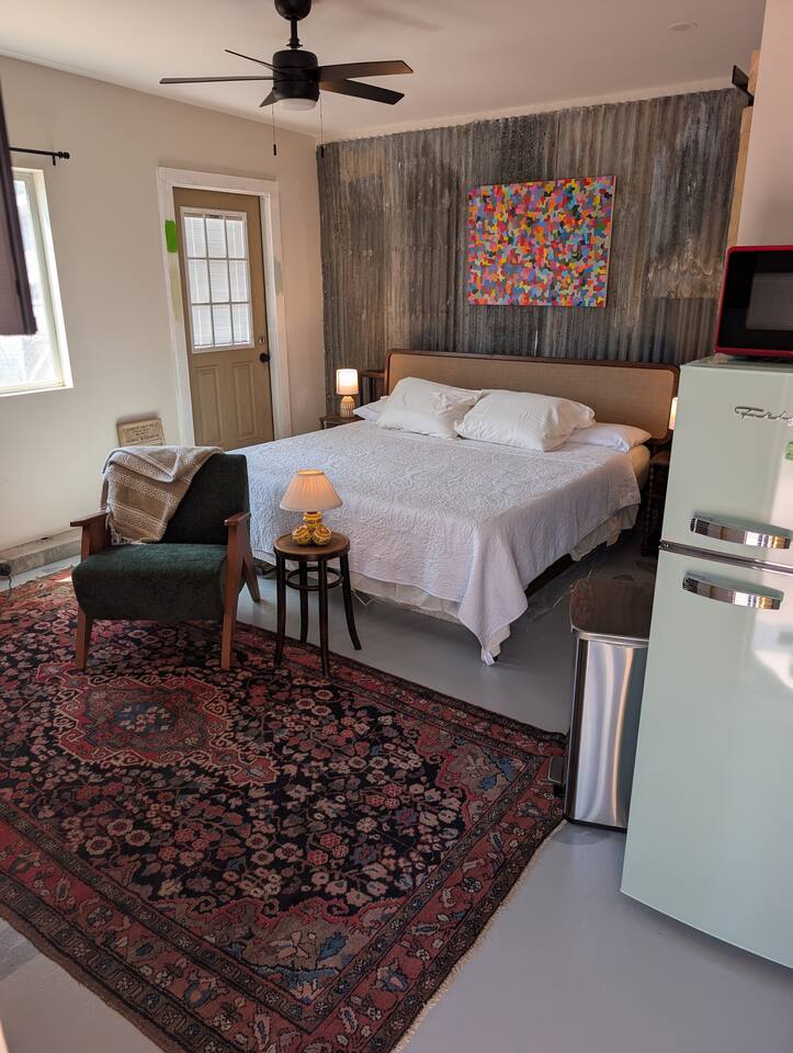 Keyless entry makes check-in simple and secure. The casita has no shared interior spaces, the outdoor space is communal and fenced, so you can let dogs run when the gates are closed if there are no other guests present, and leashed when they are. Please do not leave pups unattended outside, thank you!