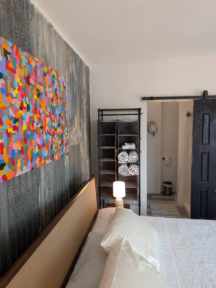 This cozy hideaway is full of charm and character! Close to White Sands National Monument and The Organ Mountain Desert Peaks National Park. 1 bed/1 bath, seating area, full kitchen that includes a washer and dryer. This stay will immerse you in a mix of Boho and Mexican culture. There is off-street parking for one vehicle, a King bed and a bathroom with a shower. Very centrally located, you will be 5-10 minutes to both the University and the famed Las Cruces Farmers Market. Enjoy!