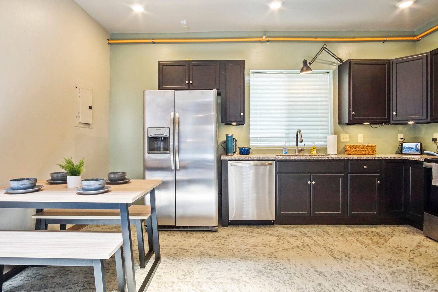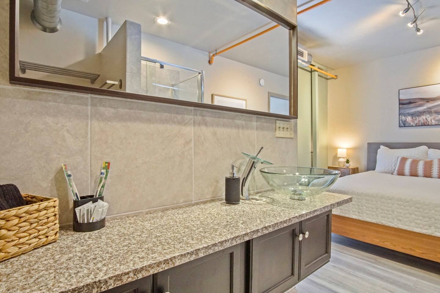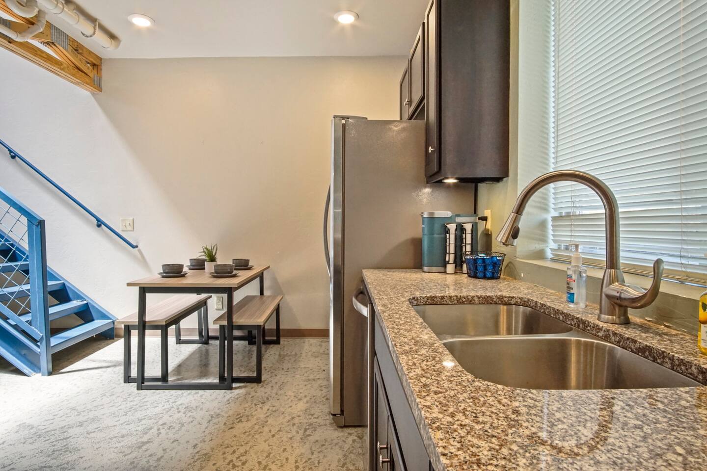 Whether you are just getting away for the weekend or looking for an extended stay, we’re committed to offering comfortable, clean and exciting experiences for our guests. We offer contact-free check-in and 24/7 support which limits in-person interaction. This property has exterior cameras for guests safety and for the protection of the property. Amenities include: - High speed internet - Free parking - Complimentary stocked coffee bar and snacks - Two private balconies - Games - In-unit washer and dryer - Fully furnished kitchen with brand new appliances. ★ NO PETS ALLOWED ★ We love those little (and not so little) furry bundles of joy. Sadly, our loft is not suitable to accommodate them. ★ NO SMOKING INSIDE ★ Please refrain from smoking inside the cabin! Any smoking evidence will result in odor removal and furniture cleaning fees. ★ NO PARTIES/EVENTS ★ We kindly ask you to treat our place as your own to preserve its pristine condition for future guests and your return visits. Please respect the community noise ordinance from 10 PM to 10 AM. Unauthorized gatherings will be terminated immediately with no refund. Always be respectful of our community and be good neighbors. What To Bring: - Favorite coffee and creamers - Food/ Snacks - Condiments - Oils, seasonings, and cooking basics - Ice - Personal Toiletries Housekeeping provides a starter supply of basic essentials. These supplies will not be replenished. Below is a list of the items: - 1-2 rolls of toilet paper, per bathroom - 1 bottle of hand soap, per bathroom - 2 bathroom garbage bags, per bathroom - 1 bottle of shampoo, conditioner, and body wash, per shower - 1 roll of paper towels - 1 bottle of dish soap - 2 sponges - 4 dishwasher pods - 4 tall kitchen garbage bags - 5 coffee pods - Small powder creamer - Small sugar - Salt/ pepper - 4 Laundry pods WiFi terms and conditions: WiFi is provided as a convenience only and is not integral to the use the property. No refund of payments shall be given for outages, content, lack of content, speed, access problems.