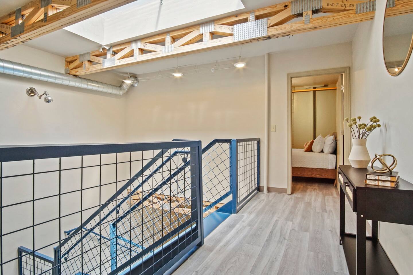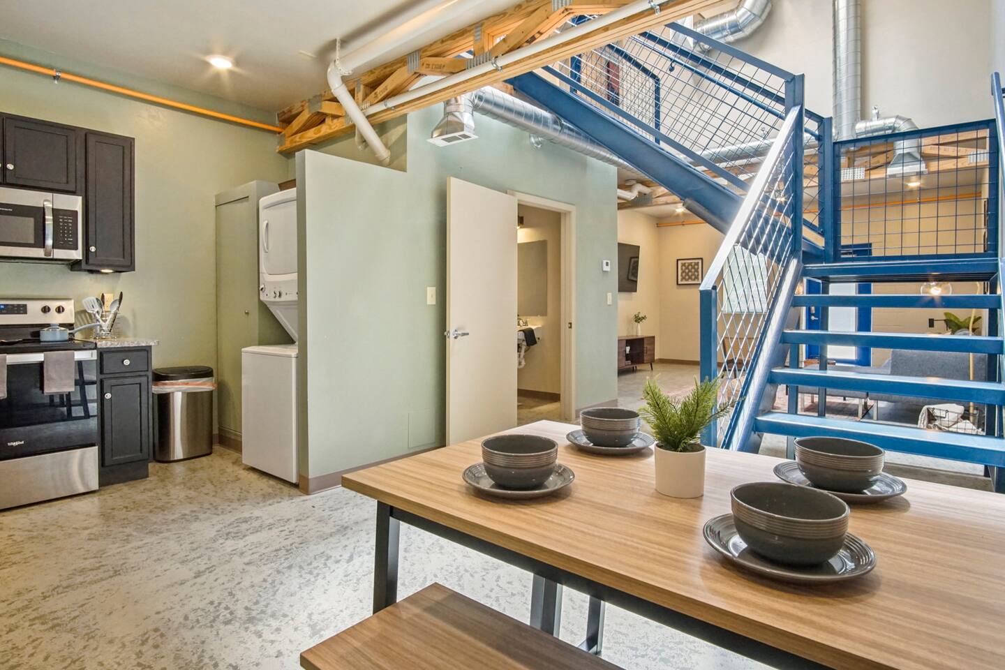 Modern, industrial apartment loft located in downtown OKC right next to OU Medical Center, State Fair Grounds, and the Paycom Center! Enjoy this cozy, unique space all to yourselves in addition to a wide open floor plan that is perfect for interacting with other guests. Can accommodate 1-5 guests. Perfect for working from home with upgraded WiFi. This is unit #2. Ask us about unit #1 & #4, as well! Be sure to check out our reviews and our weekly and monthly discounts!